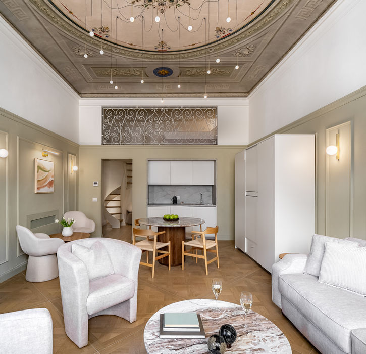 Apartment consists of living room with kitchenette and double sofa bed, bathroom and upstairs double bed ocn the walk-in closet